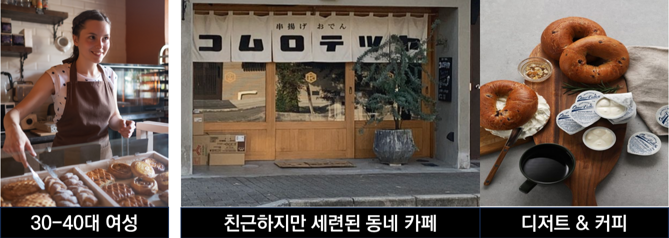 가상인물과 콘셉트를 만들기 위해 일본 베이커리 창업 관련 도서 '줄 서는 일본의 작은 빵집, <내 가게 시작하기> 편집부 지음.'를 참고했습니다. 이 책에 소개된 점포 중 베이글과 커피를 함께 팔고 있고, 점포 면적은 약 15평인 "하쿠라 쿠 베이글"의 여자 사장님을 모티브로 가상인물과 콘셉트를 선정했습니다.